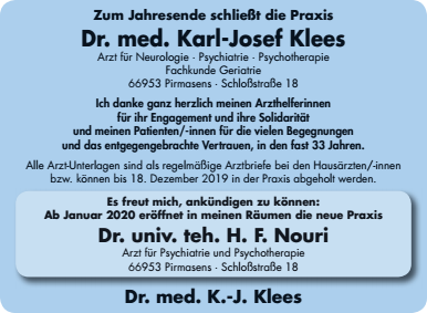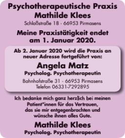 - Annoncen in der Rheinpfalz und Pirmasenser Zeitung vom 30.11.19
